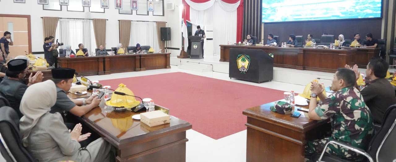 RANPERDA GOWA — Wakil Bupati Gowa Darmawangsyah Muin menghadiri Rapat Paripurna DPRD Kabupaten Gowa di Ruang Rapat Paripurna DPRD Gowa, Jumat (6/2). Empat Ranperda disetujui untuk tahap pembahasan lanjutan. (foto/ist)