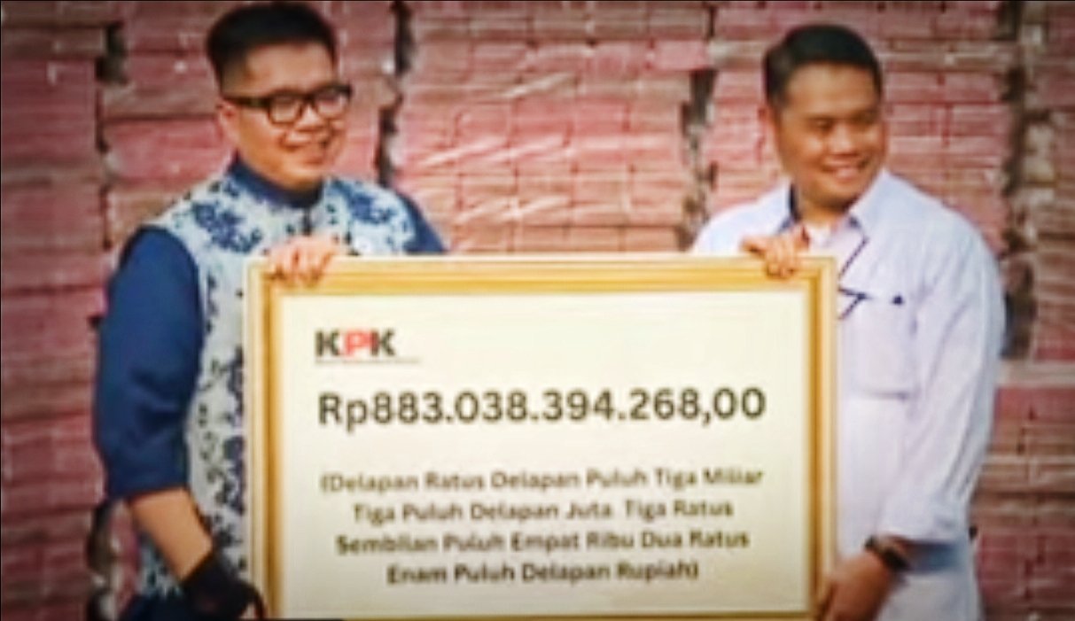 “Setelah dilakukan serangkaian proses pemulihan aset oleh KPK dari perkara Taspen, hari ini KPK akan melakukan penyerahan kepada PT Taspen (Persero) atas penjualan kembali aset yang sudah dirampas, yakni dalam bentuk uang sebesar Rp 883.038.394.268,” ujar Asep.