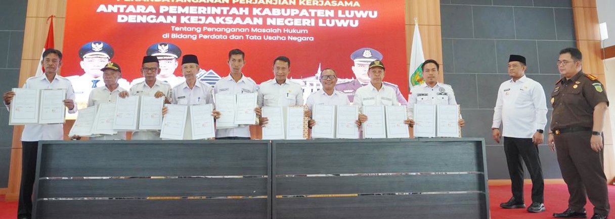 JAMLIMA.COM, LUWU — Pemerintah Kabupaten Luwu dan Kejaksaan Negeri Luwu menandatangani kesepakatan bersama optimalisasi tugas dan fungsi bidang Perdata dan Tata Usaha Negara, Rabu (28/1/2026).