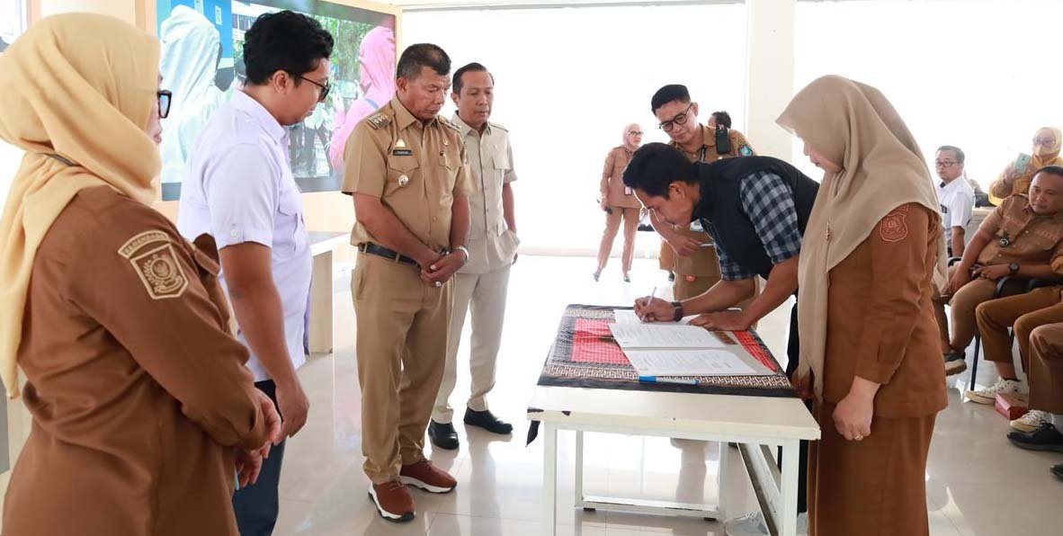 SANIMAS — Bupati Bulukumba Andi Muchtar Ali Yusuf menerima dokumen serah terima Program IBM Sanimas Kabupaten Bulukumba di Gedung Pinisi, Senin (26/1/2026). Program ini mendorong desa mewujudkan sanitasi aman dan berkelanjutan. (foto/ist)
