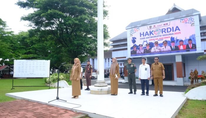 KORUPSI - Saat Bupati Gowa, Husniah Talenranh di acara penandatanganan komitmen bersama dalam rangka Hari Anti Korupsi Sedunia di Halaman Upacara Kantor Bupati Gowa, Senin (8/12/2025). (foto/ist)